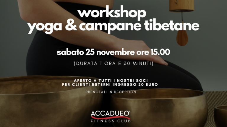 Sabato 25 novembre 2023 dalle ore 15.00 alle 16.30 WORKSHOP YOGA E CAMPANE TIBETANE aperto a tutti i nostri soci per clienti esterni l’ingresso è